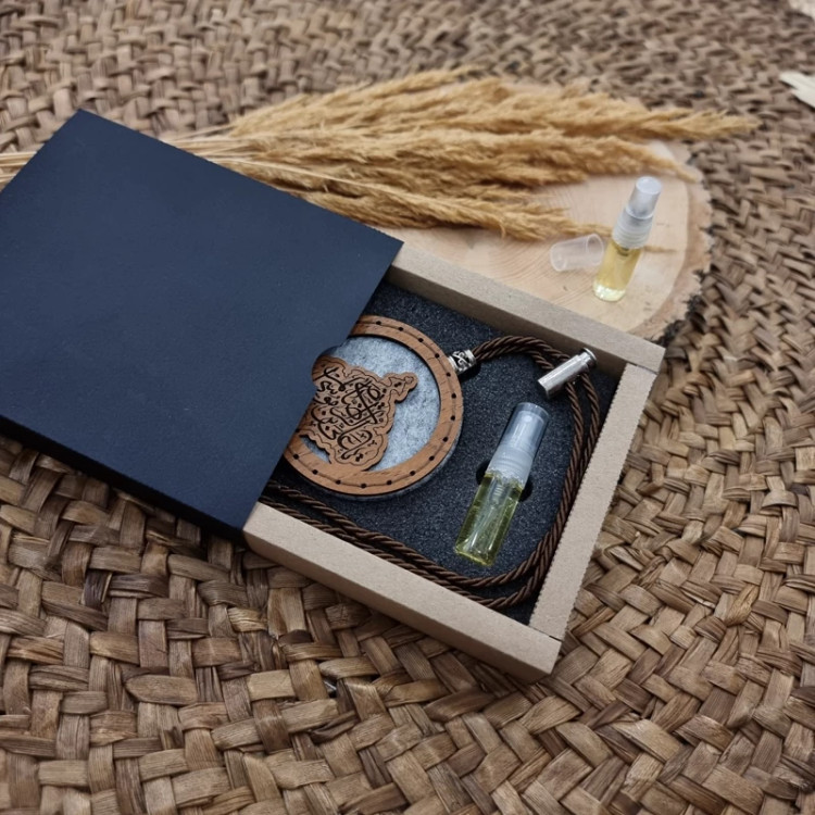 این محصول از چوب طبیعی با کیفیت ساخته شده و با حکاکی لیزری ظریف و دوخت دستی دورکار، جلوهای منحصربهفرد و خاص پیدا کرده است. طراحی دوطرفه و وجود لایه نمدی در مرکز، باعث پخش بهتر اسانس و ماندگاری بیشتر رایحه میشود.