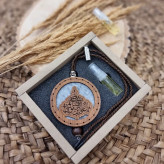 این محصول از چوب طبیعی با کیفیت ساخته شده و با حکاکی لیزری ظریف و دوخت دستی دورکار، جلوهای منحصربهفرد و خاص پیدا کرده است. طراحی دوطرفه و وجود لایه نمدی در مرکز، باعث پخش بهتر اسانس و ماندگاری بیشتر رایحه میشود.