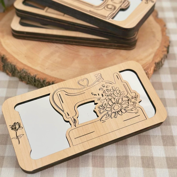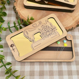 جاسوزنی چوبی دست ساز با طرح چرخ خیاطی کلاسیک