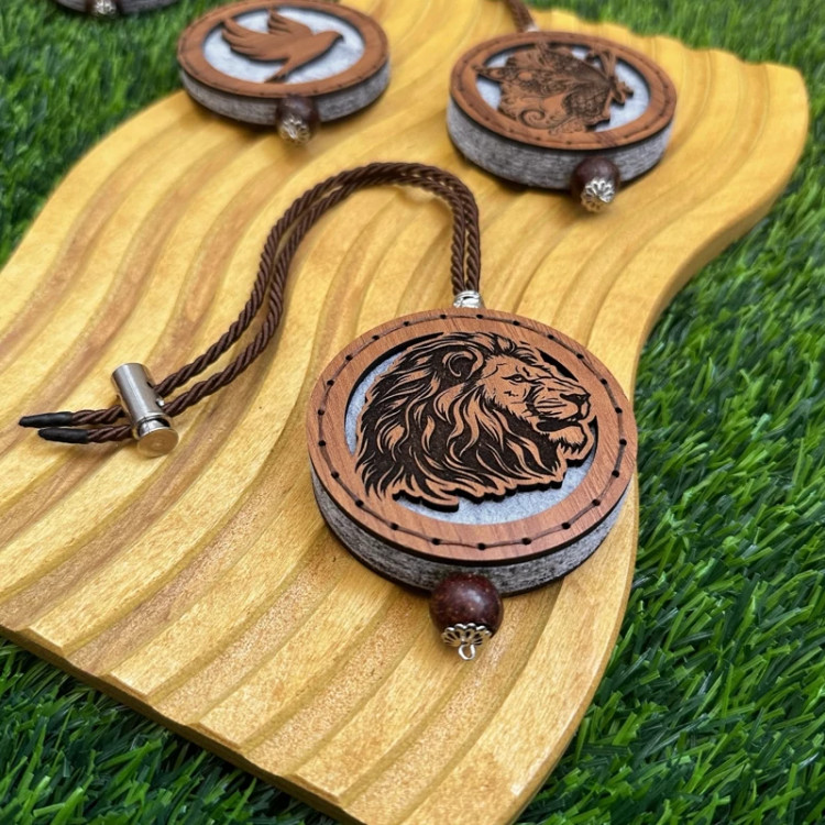آویز خوشبوکننده چوبی طرح شیر، نماد قدرت، اعتمادبهنفس و اصالت است.