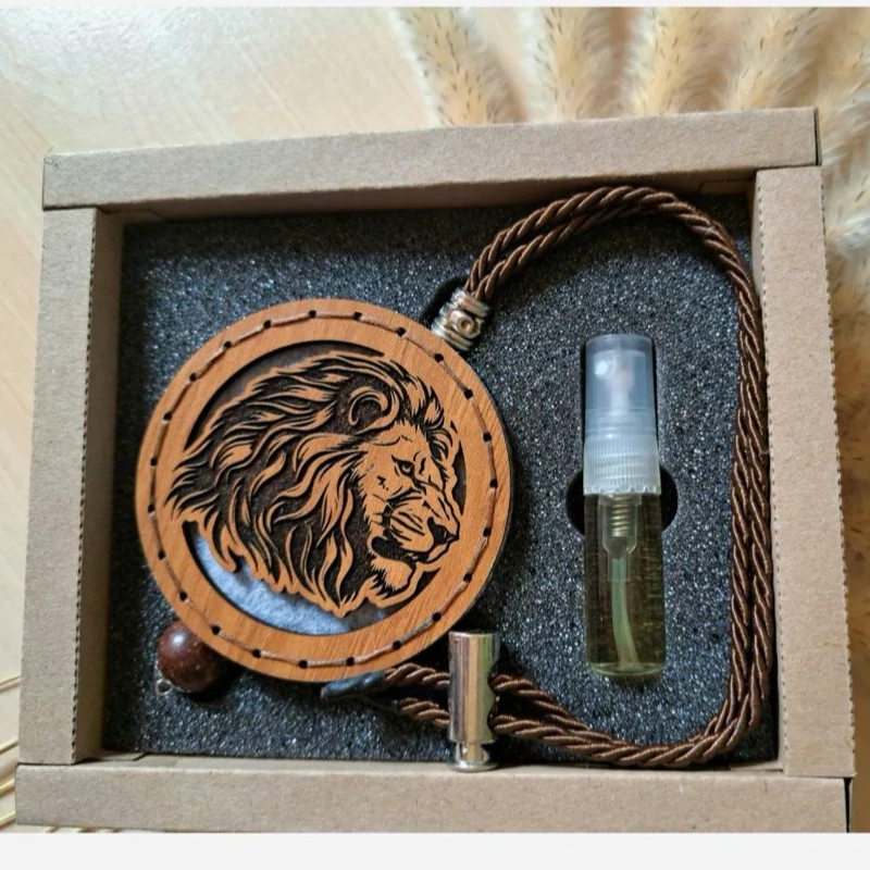 آویز خوشبوکننده چوبی طرح شیر، نماد قدرت، اعتمادبهنفس و اصالت است.