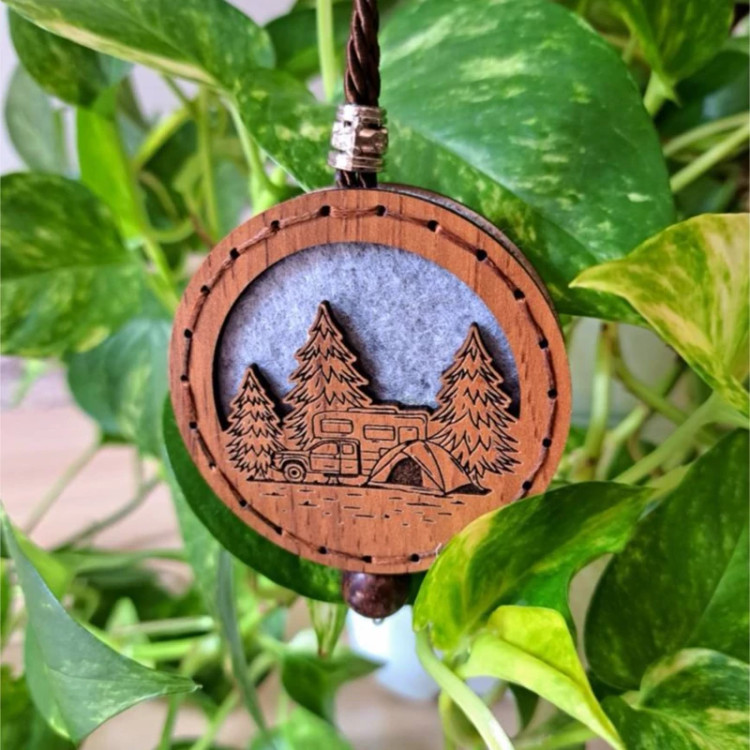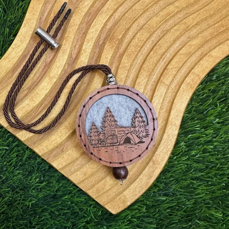 آویز خوشبوکننده چوبی طرح کمپ جنگلی، انتخابی خاص برای عاشقان طبیعت و سفر است.
