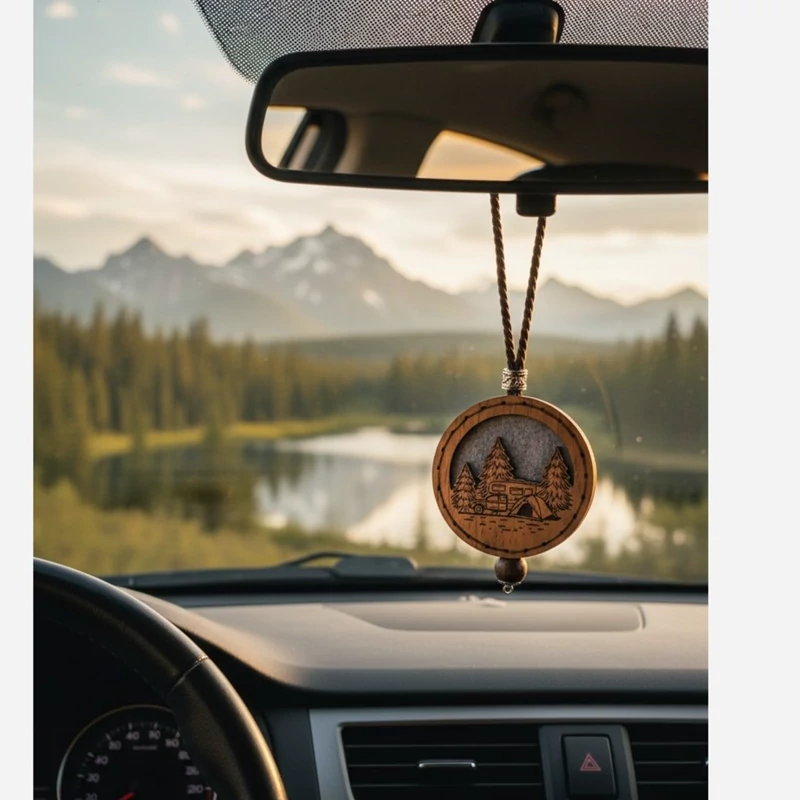 آویز خوشبوکننده چوبی طرح کمپ جنگلی، انتخابی خاص برای عاشقان طبیعت و سفر است.